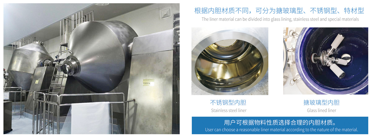 ◎ 在動力驅(qū)動下,罐體作緩慢旋轉(zhuǎn),罐內(nèi)物料不斷地混合,從而達到強化干燥的目的。